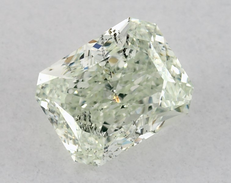 This radiant cut 0.5 carat Fancy Yellowish Green color SI2 clarity has a diamond grading report from GIA
