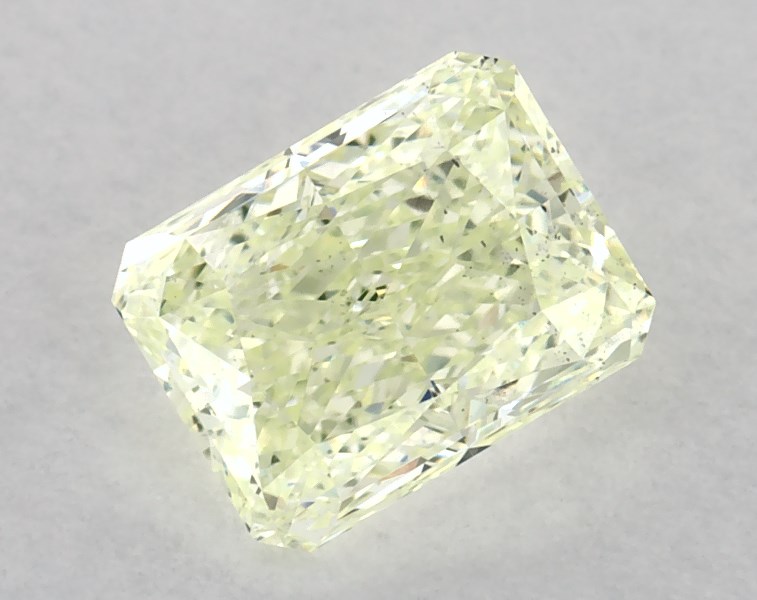 This radiant cut 0.71 carat Fancy Yellow Green color SI2 clarity has a diamond grading report from GIA
