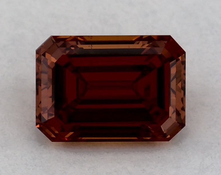 This Lab-Grown diamond emerald cut 0.52 carat Fancy Vivid Orange color VS1 clarity has a diamond grading report from IGI