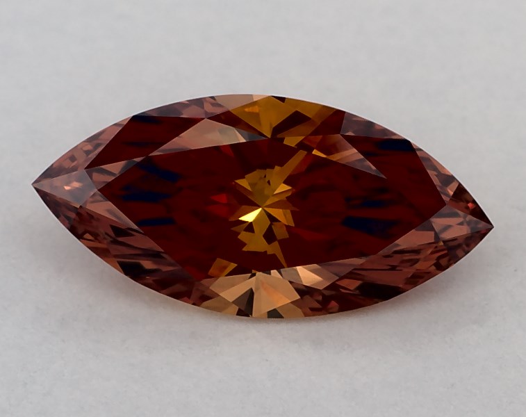 This Lab-Grown diamond marquise cut 1.09 carat Fancy Intense Brownish Orange color VS1 clarity has a diamond grading report from IGI
