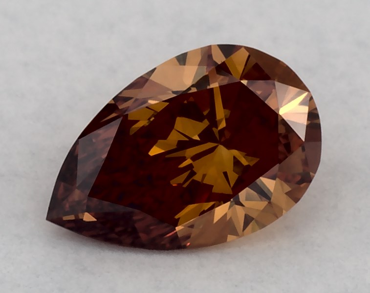 This Lab-Grown diamond pear shaped 0.33 carat Fancy Orange color VVS2 clarity has a diamond grading report from IGI
