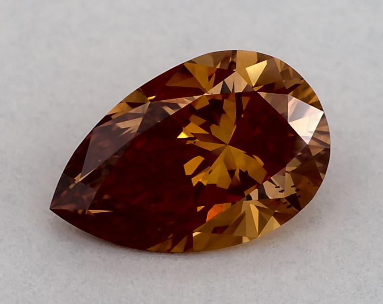 This Lab-Grown diamond pear shaped 0.59 carat Fancy Vivid Orange color VS2 clarity has a diamond grading report from IGI