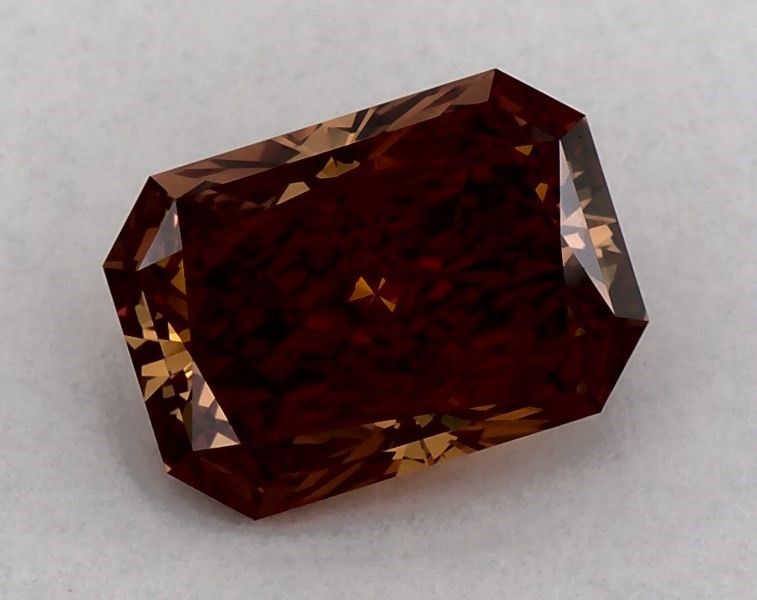 This Lab-Grown diamond radiant cut 1 carat Fancy Vivid Brownish Orange color VS1 clarity has a diamond grading report from IGI