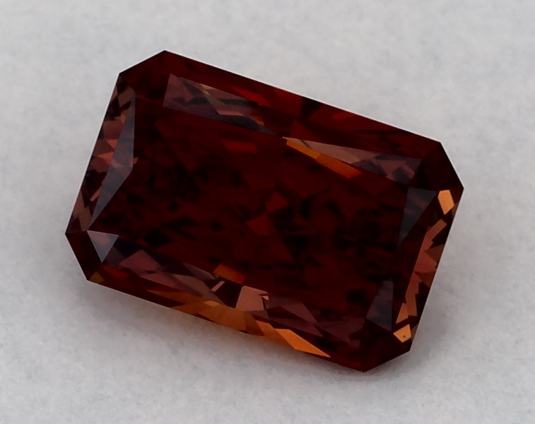 This Lab-Grown diamond radiant cut 1.01 carat Fancy Vivid Orange color VS1 clarity has a diamond grading report from IGI