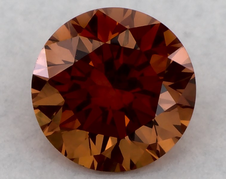 This Lab-Grown diamond round cut 0.38 carat Fancy Vivid Orange color VVS2 clarity has a diamond grading report from IGI