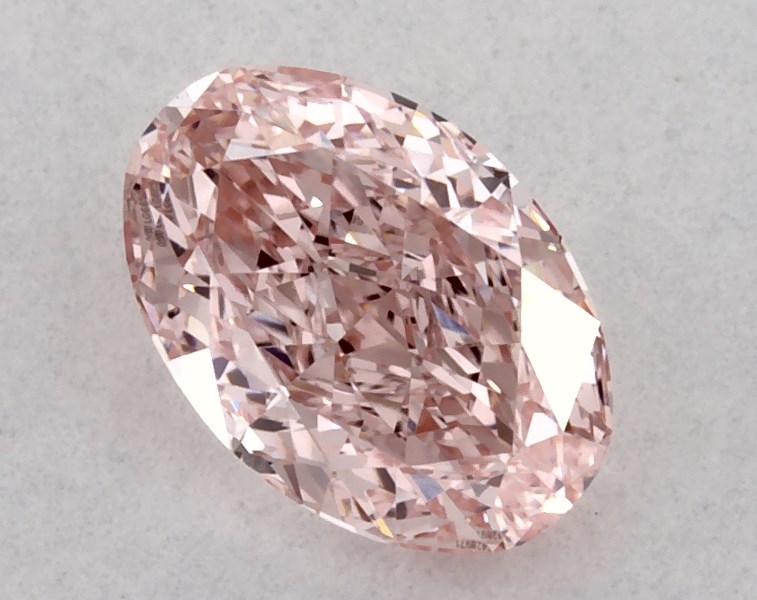 This Lab-Grown diamond oval cut 0.43 carat Fancy Intense Pink color VS2 clarity has a diamond grading report from IGI