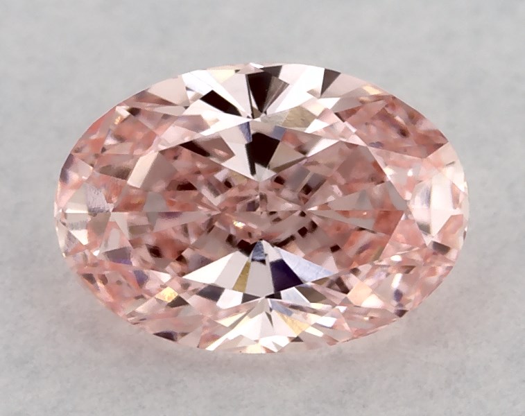 This Lab-Grown diamond oval cut 0.43 carat Fancy Vivid Pink color VVS2 clarity has a diamond grading report from IGI