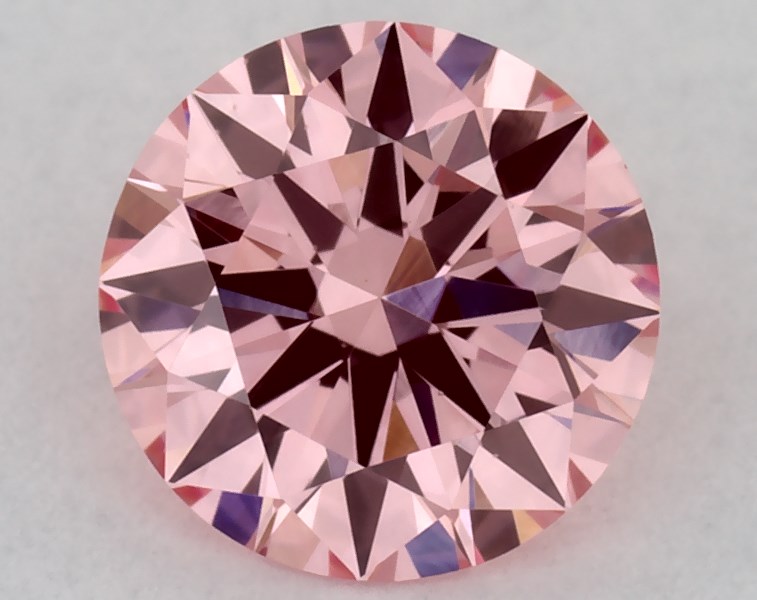 This Lab-Grown diamond round cut 0.42 carat Fancy Vivid Pink color VS1 clarity has a diamond grading report from IGI