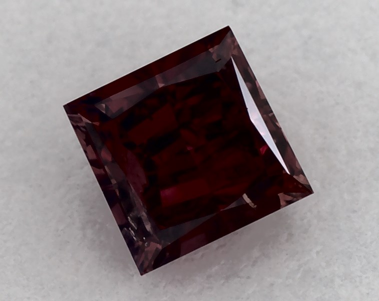This princess cut 0.28 carat Fancy Red color I1 clarity has a diamond grading report from GIA