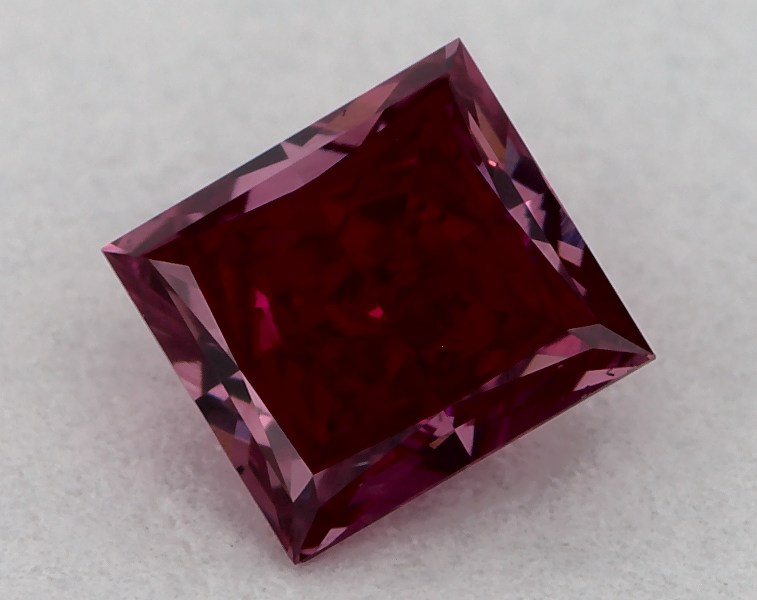 This princess cut 0.3 carat Fancy Purplish Red color SI2 clarity has a diamond grading report from GIA