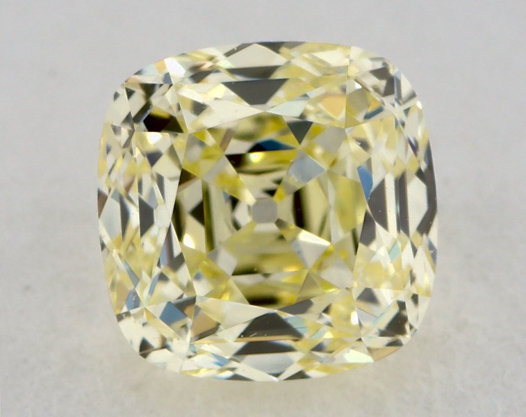 This cushion modified cut 0.71 carat Fancy Yellow color IF clarity has a diamond grading report from GIA