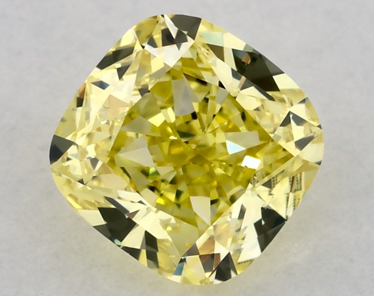 This Lab-Grown diamond cushion modified cut 0.81 carat Fancy Intense Yellow color VS2 clarity has a diamond grading report from IGI
