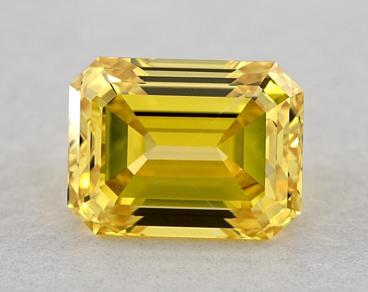 This Lab-Grown diamond emerald cut 1.71 carat Fancy Vivid Yellow color VS1 clarity has a diamond grading report from IGI