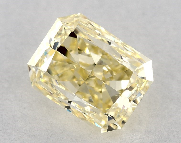 This radiant cut 1 carat Fancy Light Even Yellow color VS1 clarity has a diamond grading report from GIA