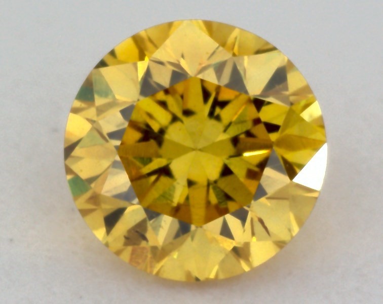 This round cut 0.2 carat Fancy Intense Yellow color SI2 clarity has a diamond grading report from GIA