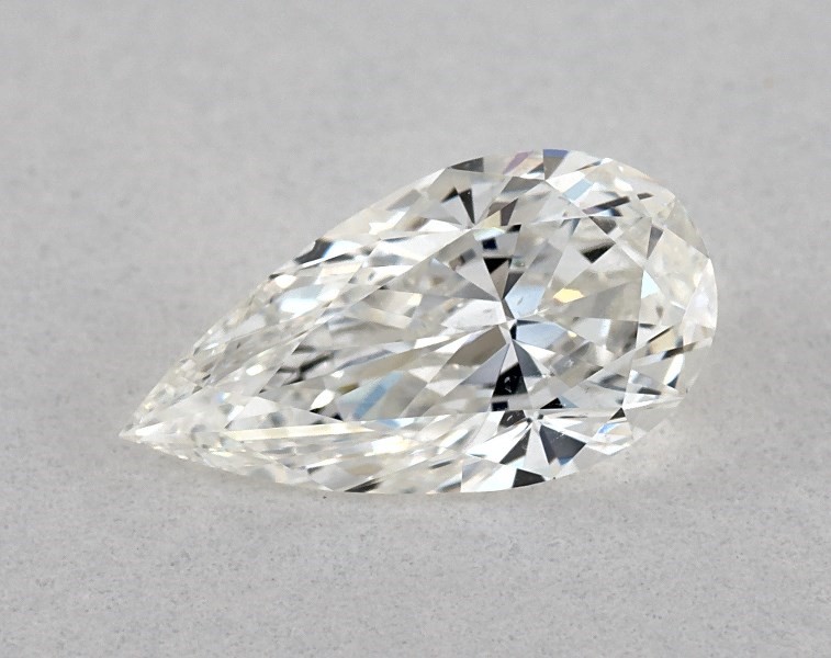 This 0.52 carat pear diamond H color SI1 clarity has Very Good proportions and a diamond grading report from GIA