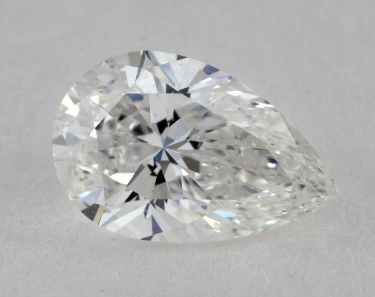 This 0.75 carat pear diamond F color SI1 clarity has Ideal proportions and a diamond grading report from GIA