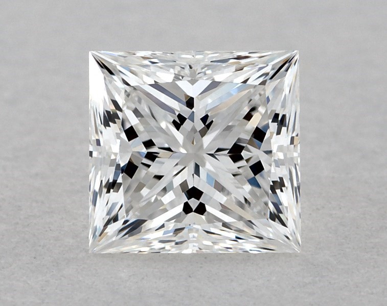 This 0.58 carat princess diamond E color VVS1 clarity has Ideal proportions and a diamond grading report from GIA