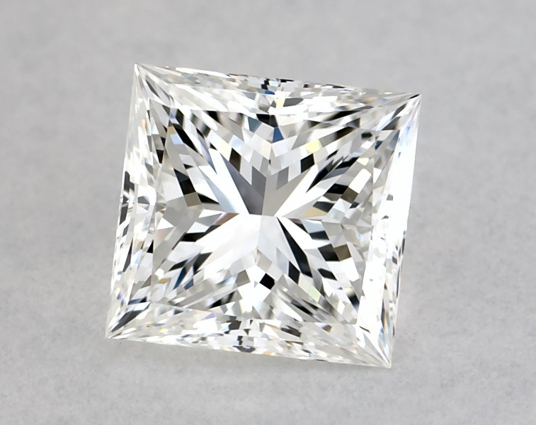 This 0.9 carat princess diamond F color VVS1 clarity has Ideal proportions and a diamond grading report from GIA