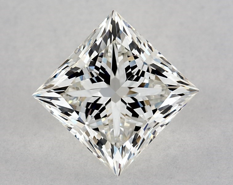 This 2.01 carat princess diamond I color VS2 clarity has Ideal proportions and a diamond grading report from GIA