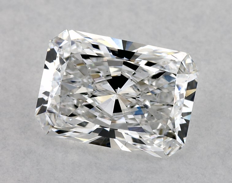 This Lab-Grown diamond 1.52 carat radiant E color VS2 clarity has Ideal proportions and a diamond grading report from IGI