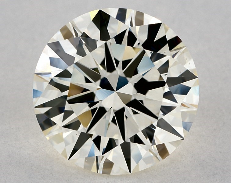 This 2.14 carat round diamond M color VS1 clarity has Excellent proportions and a diamond grading report from GIA