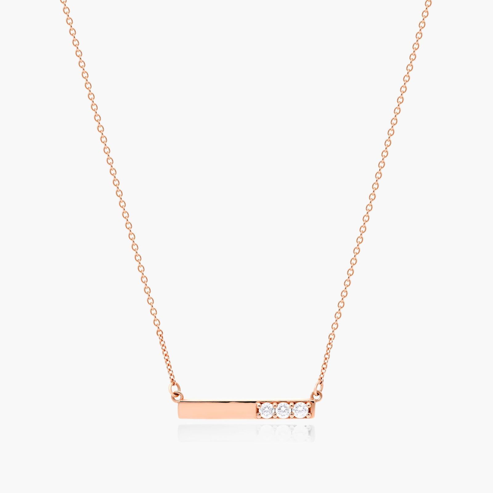 This minimal gold and diamond bar necklace is the perfect gift for those looking for an elegant, modern look. The polished gold is offset with three dazzling diamonds delivering the perfect amount of sparkle on an 18 inch chain.