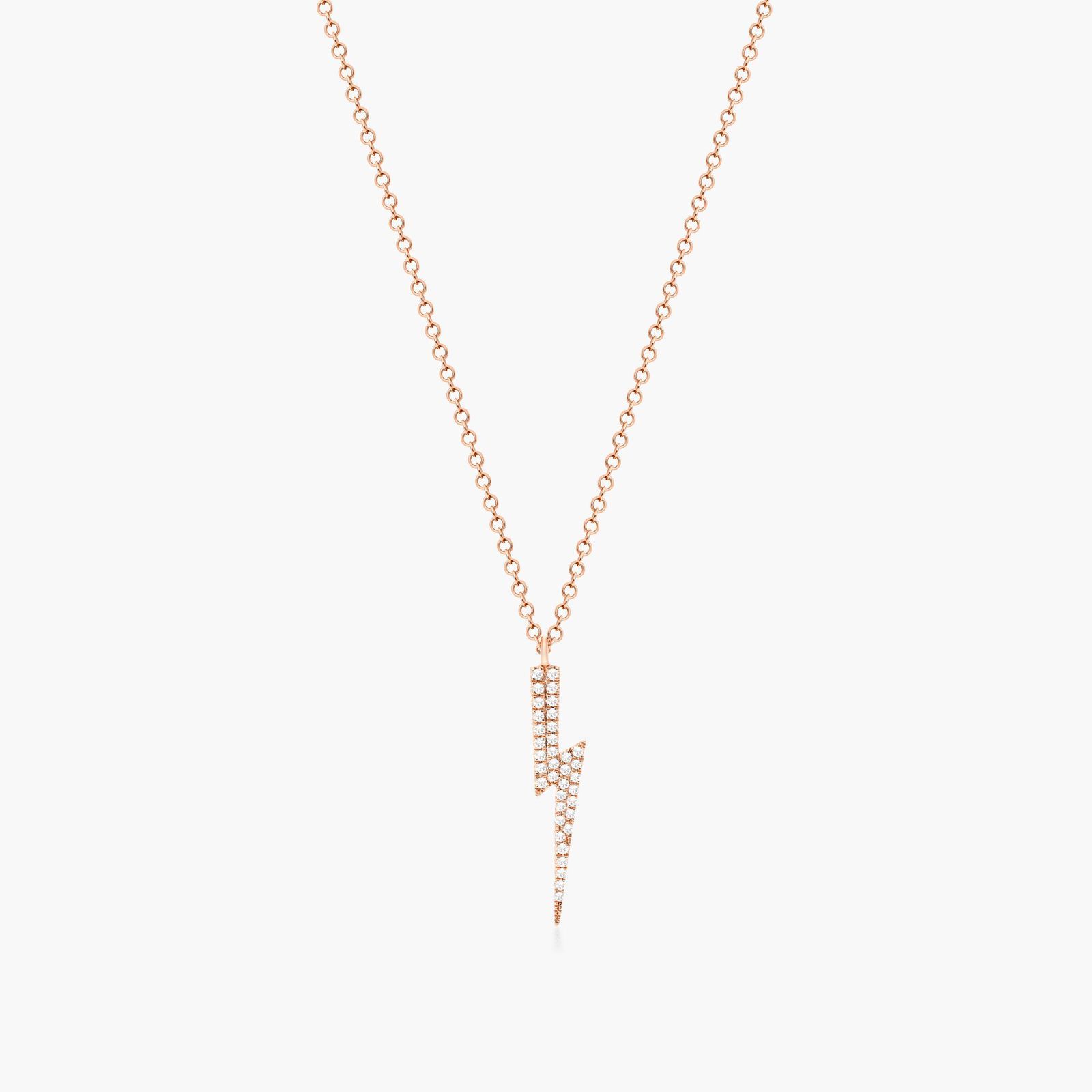 Add a bolt of electricity to your everyday look with this diamond lightening bolt pendant crafted in 14K rose gold. Bold yet understated, this modern piece is just as beautiful on its own as it is layered with your other necklaces.