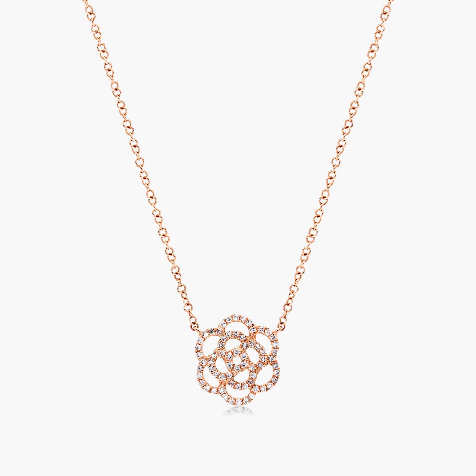 Flower Motif Diamond Necklace In 14K Rose Gold