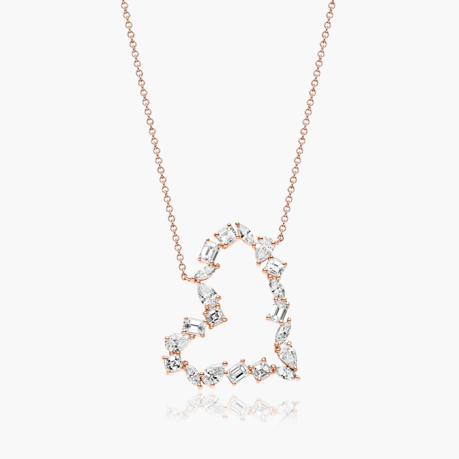 Diamond Heart Necklace With Mixed Diamonds In 14K Rose Gold