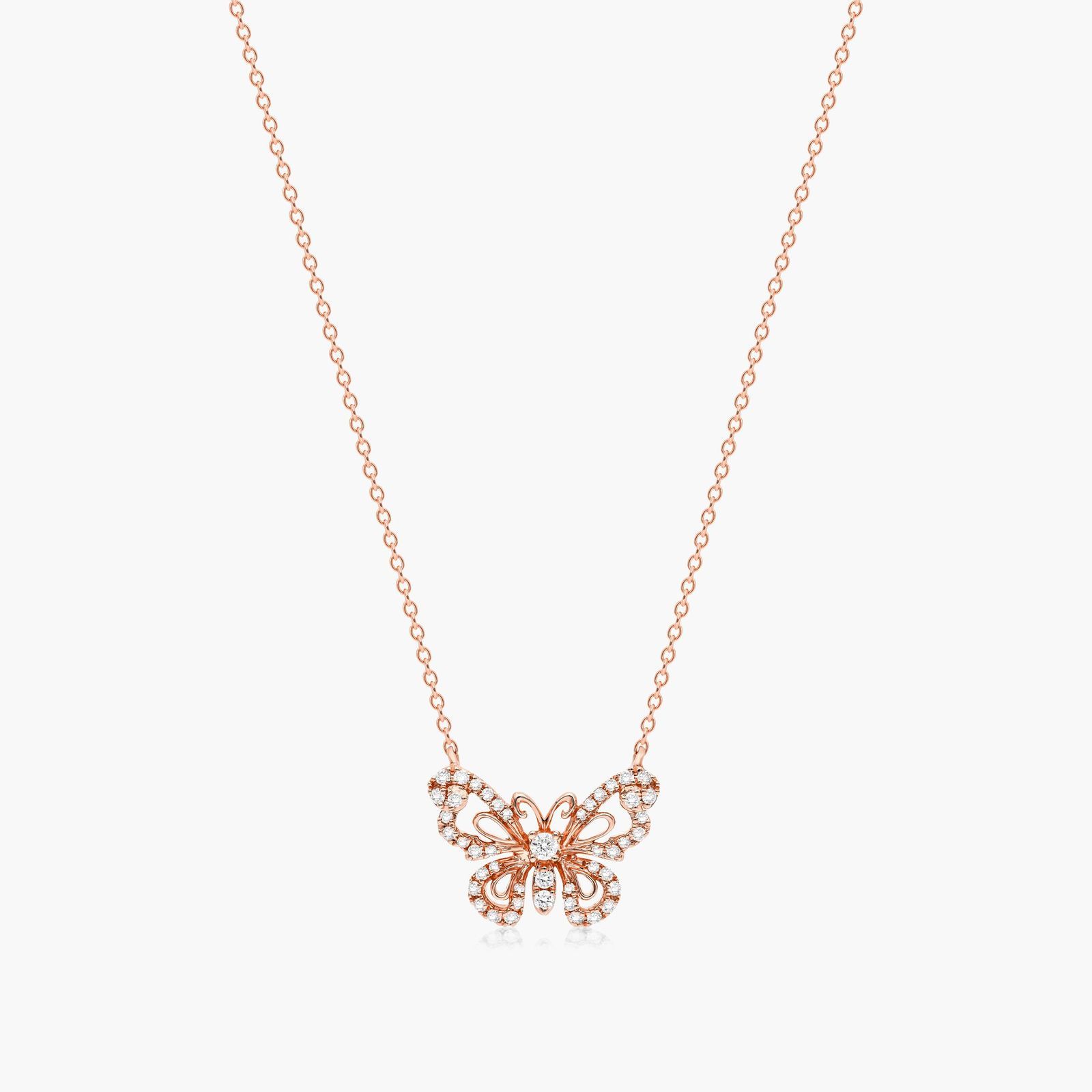 Spread your style wings with this lovely openwork butterfly necklace. Exquisitely crafted and pavé set with round brilliant diamonds. Suspended from a delicate chain, featuring a signature clasp for a perfect adjustable fit.
