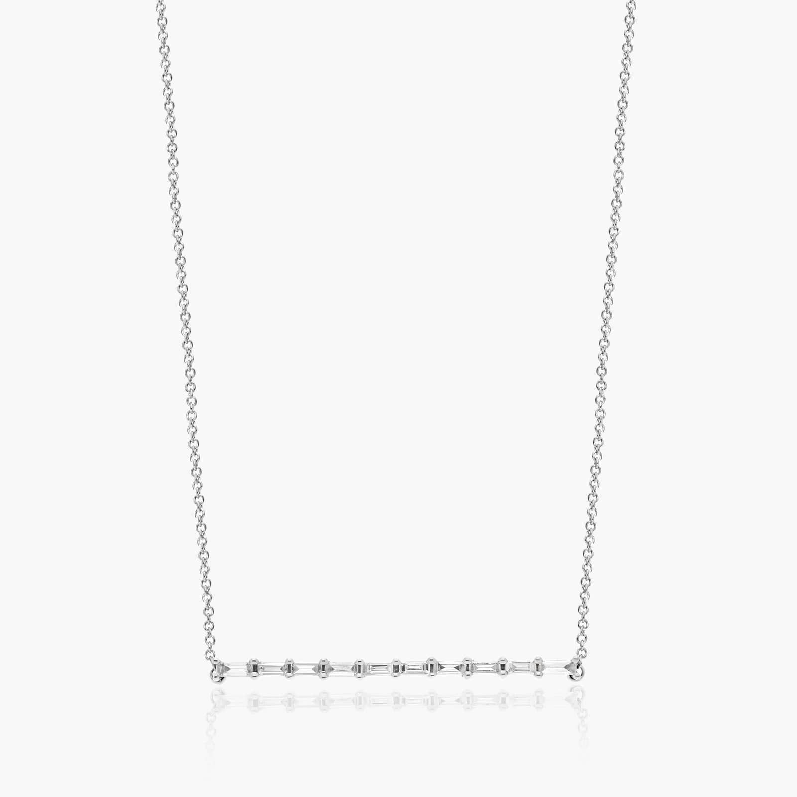 Baguette Lane Bar Necklace With Baguette Cut Lab-Grown Diamonds In 14K White Gold