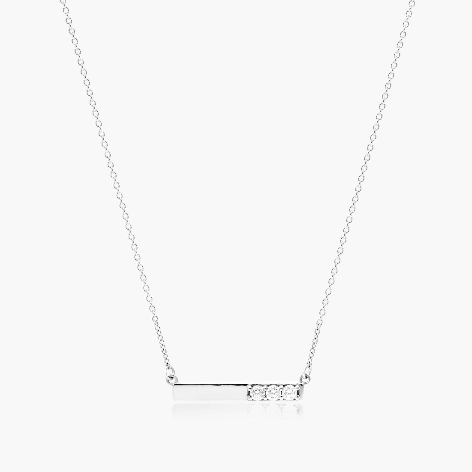This minimal gold and diamond bar necklace is the perfect gift for those looking for an elegant, modern look. The polished gold is offset with three dazzling diamonds delivering the perfect amount of sparkle on an 18 inch chain.