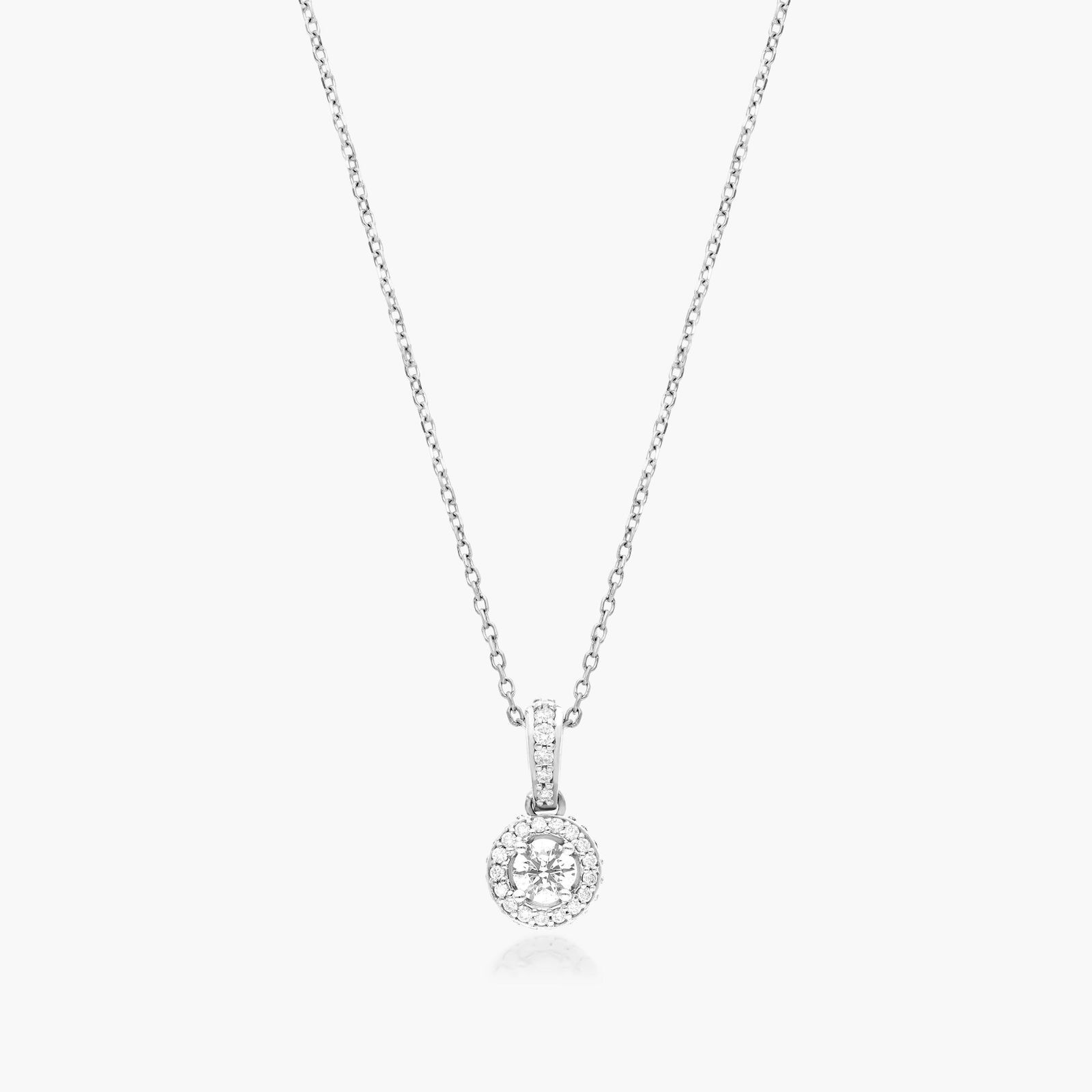 Diamond Pavé Falling Edge Halo Necklace In 14K White Gold