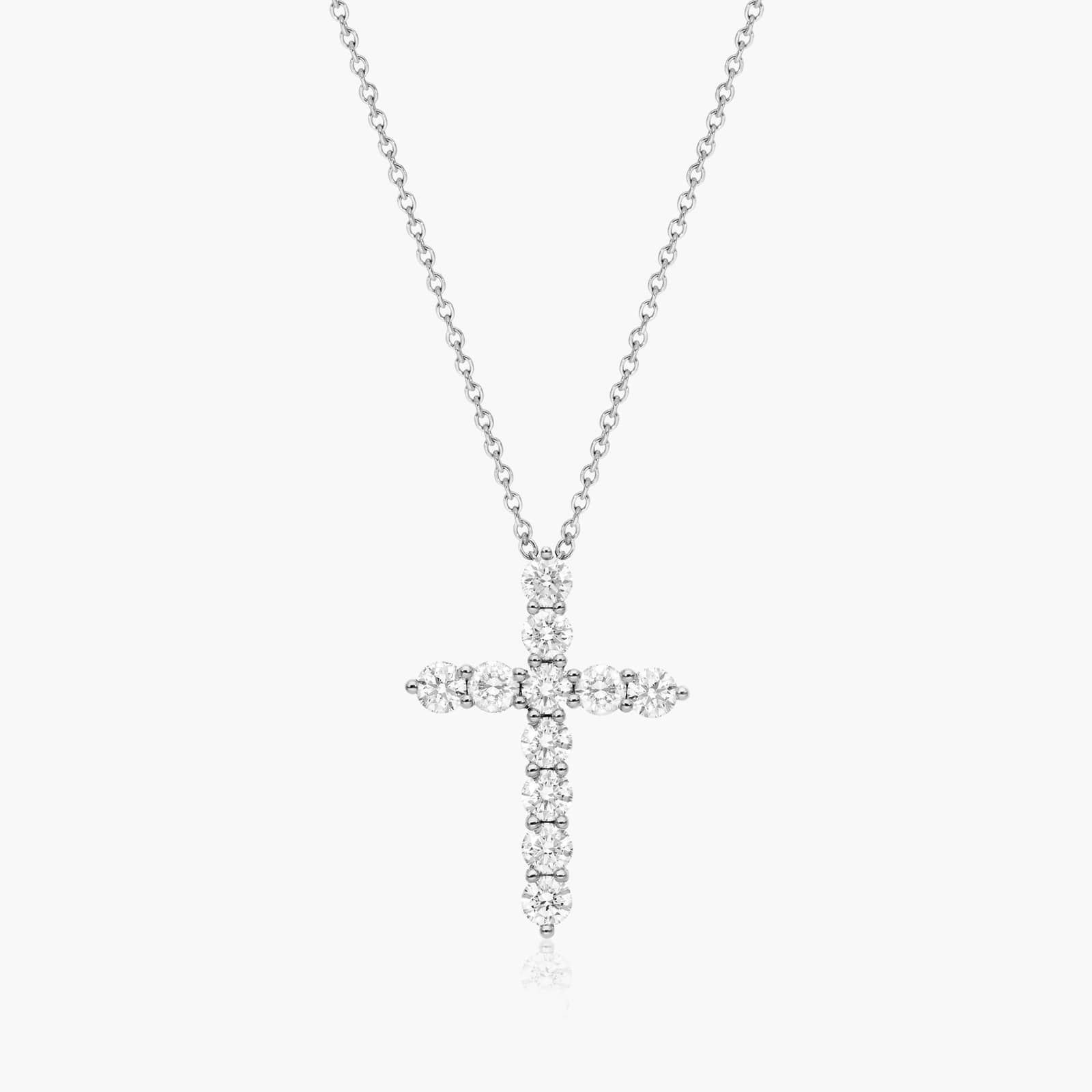 Shared Prong Diamond Cross Necklace (1 CTW) In 14K White Gold