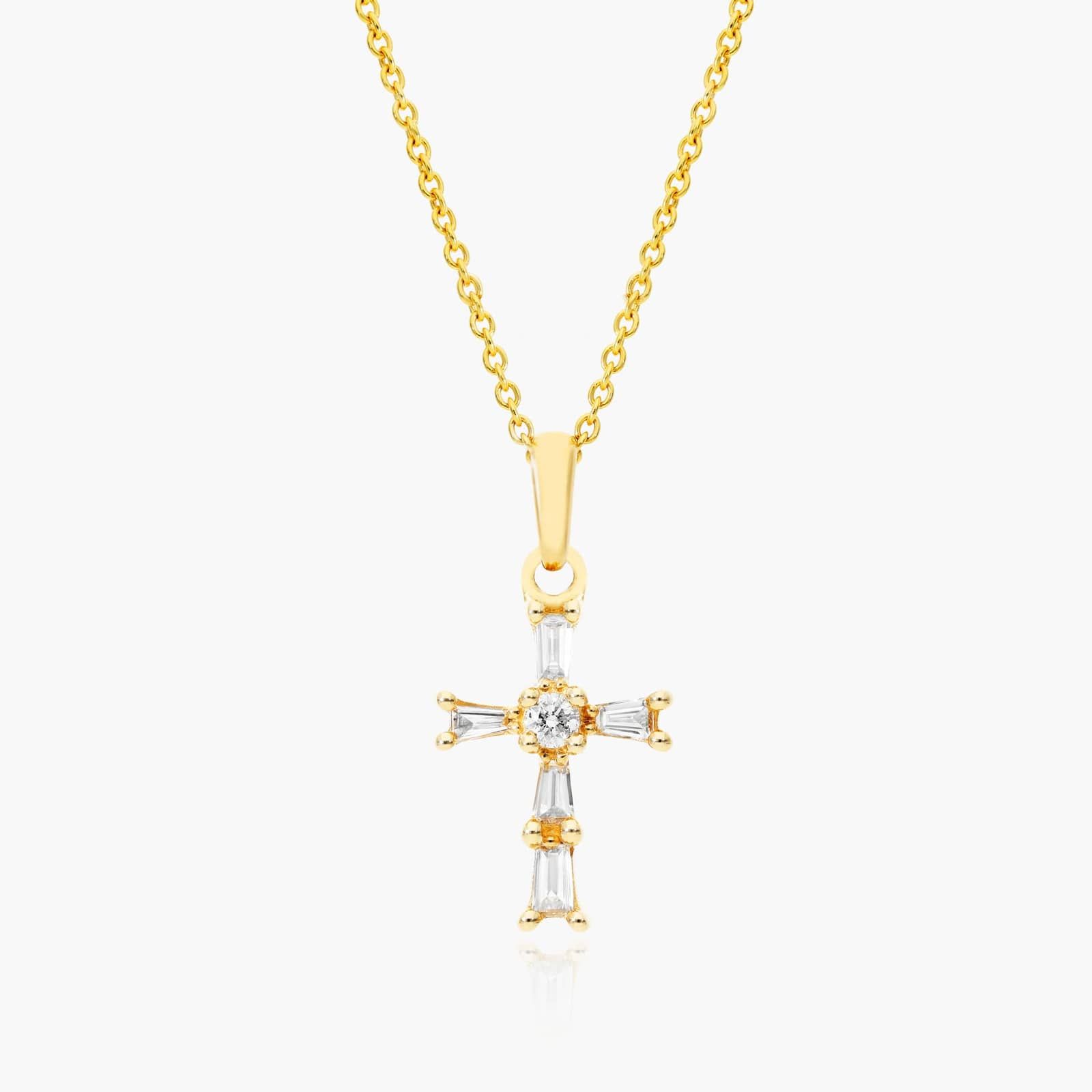 Moderne Cross Diamond Necklace In 14K Yellow Gold