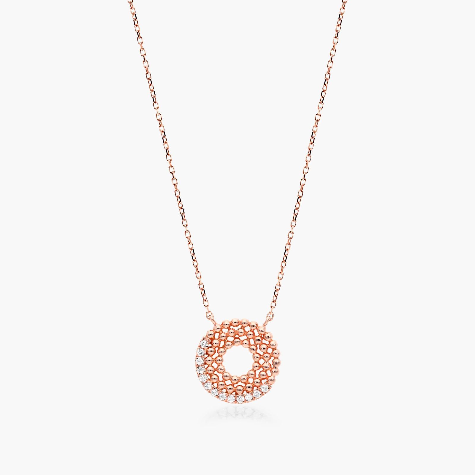 18K Rose Gold Dots Asymmetrical Open Circle Diamond Necklace