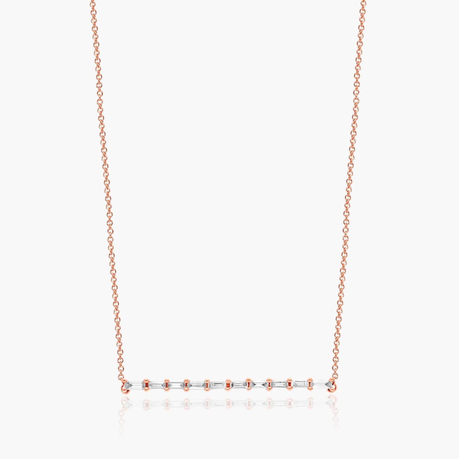 Baguette Lane Bar Necklace With Baguette Cut Lab-Grown Diamonds In 14K Rose Gold
