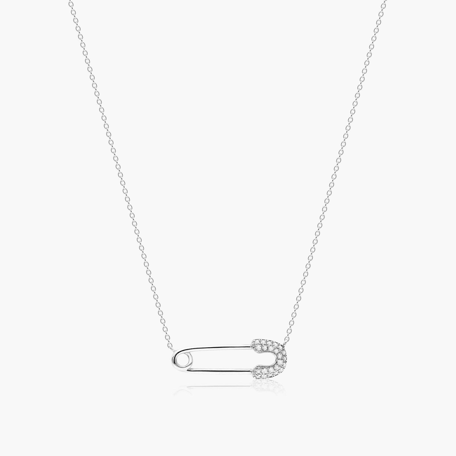 This whimsical safety pin necklace is a playful way to add a little sparkle to your everyday look. Crafted in 14K white gold on an adjustable chain, this necklace is perfect for everyday wear.