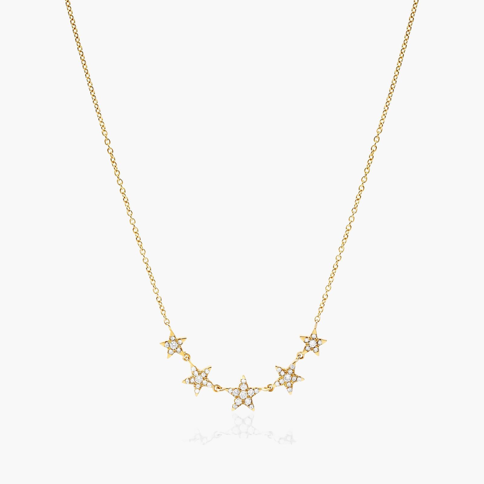 Graduated Diamond Star Necklace In 14K Yellow Gold