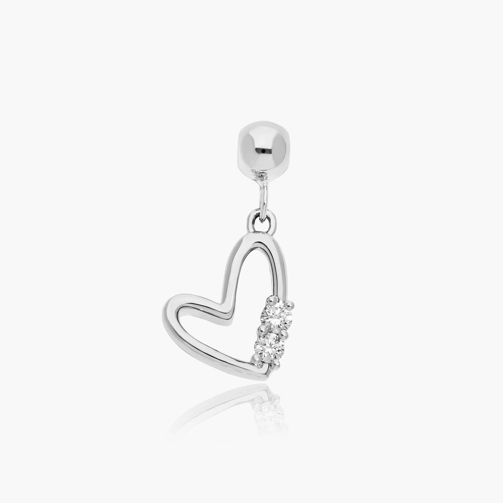 Let’s get elegant with this 14K White Gold Heart Lab Grown Diamond Charm. Featuring timeless style and expertly crafted in wonderfully luxurious materials, this will fit right into your fine jewelry collection. Wear it alone to highlight its brilliance or pair it with multiple charms for a truly charming look. Chain sold separately. Charms fit only on James Allen's Silicone Bead Slider Charm Chain