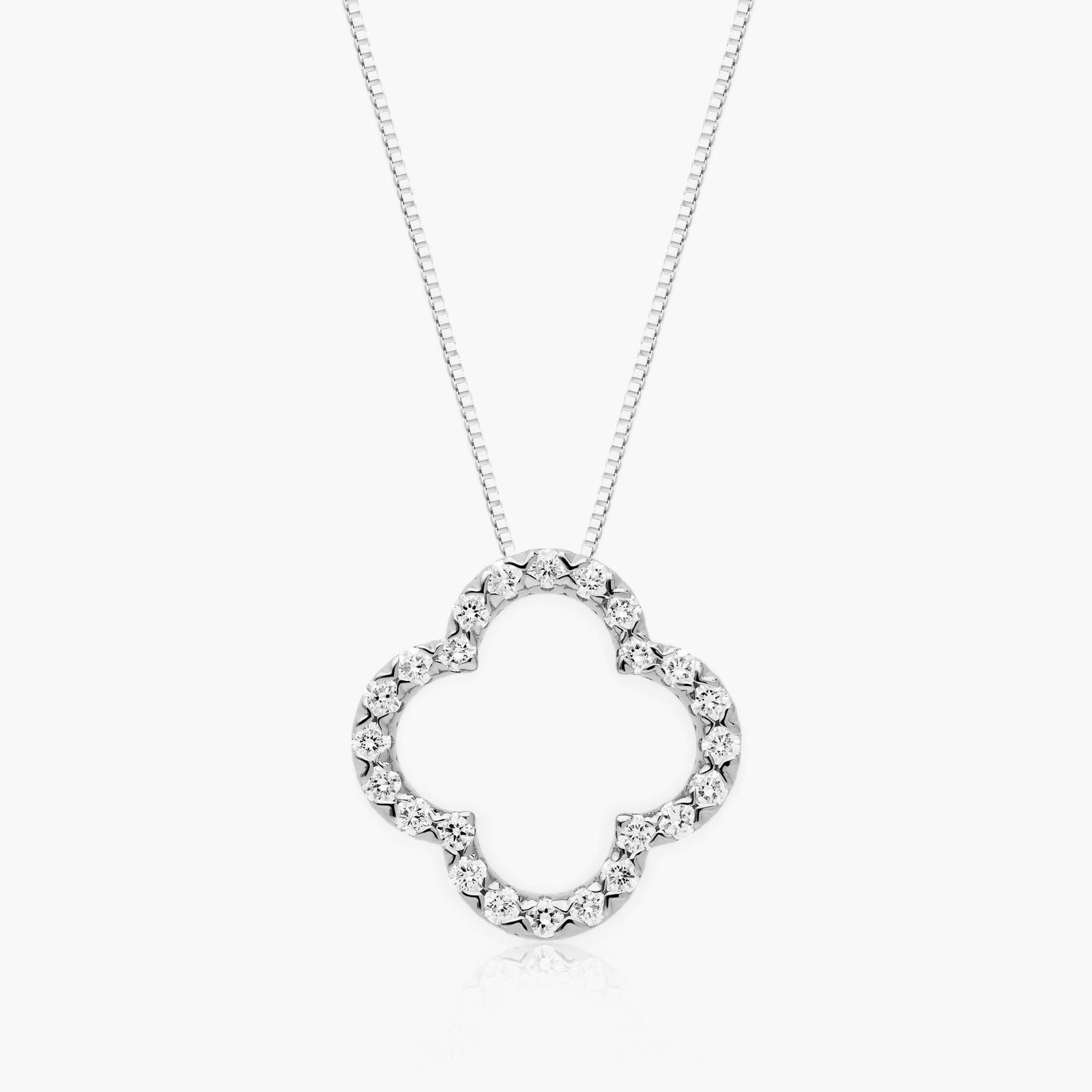 Lab-Grown Diamond Open Clover Pendant In 14K White Gold