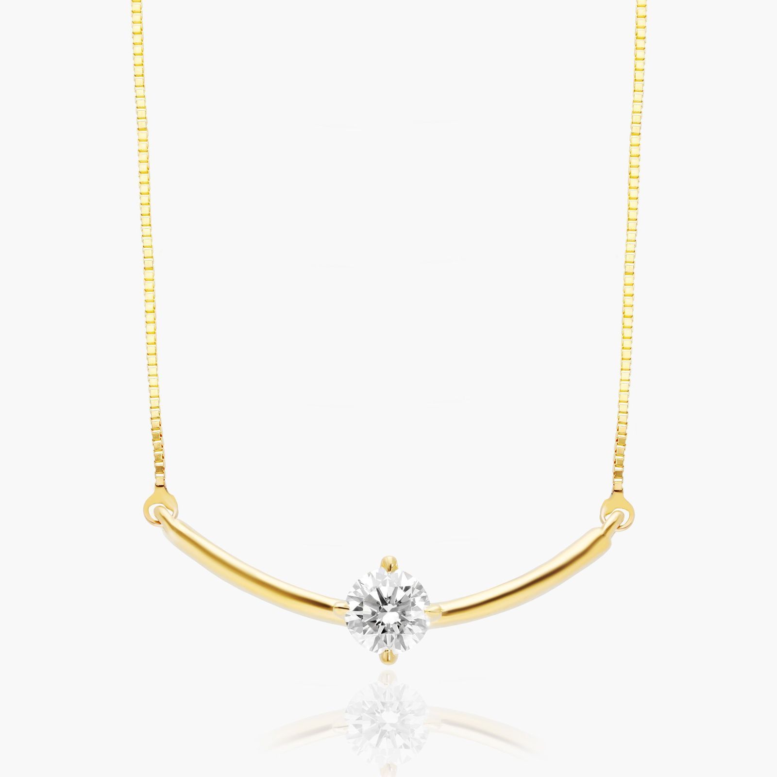 Elevate your attire with this chic bar solitaire smile necklace. Crafted in 14K gold, this contemporary design features a curved bar shimmering with a Lab-Grown round brilliant-cut diamond set in claws positioned at North, East, South, West points of a diamond. The bar is attached to a box chain and that secures with a spring-ring clasp. The necklace measures 18 inches with an extra jump ring at 16 inches for versatility.