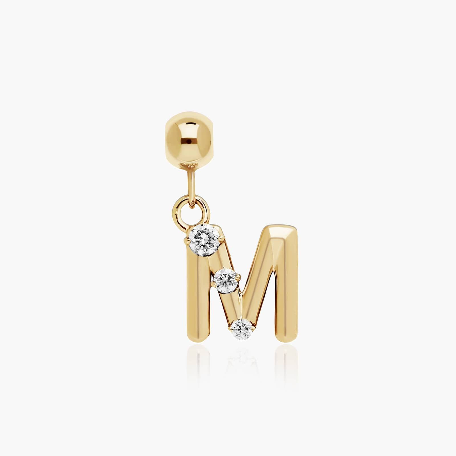 This initial is a true collectible charm! Featuring perfect diamond detail, this playful 14K Yellow Gold M Initial Lab Grown Diamond Charm makes a perfect personalized gift. WWear it alone to shine in the spotlight or wear multiple to spell out your favorite word. You're going to want one for every letter of the alphabet. Chain sold separately. Charms fit only on James Allen's Silicone Bead Slider Charm Chain