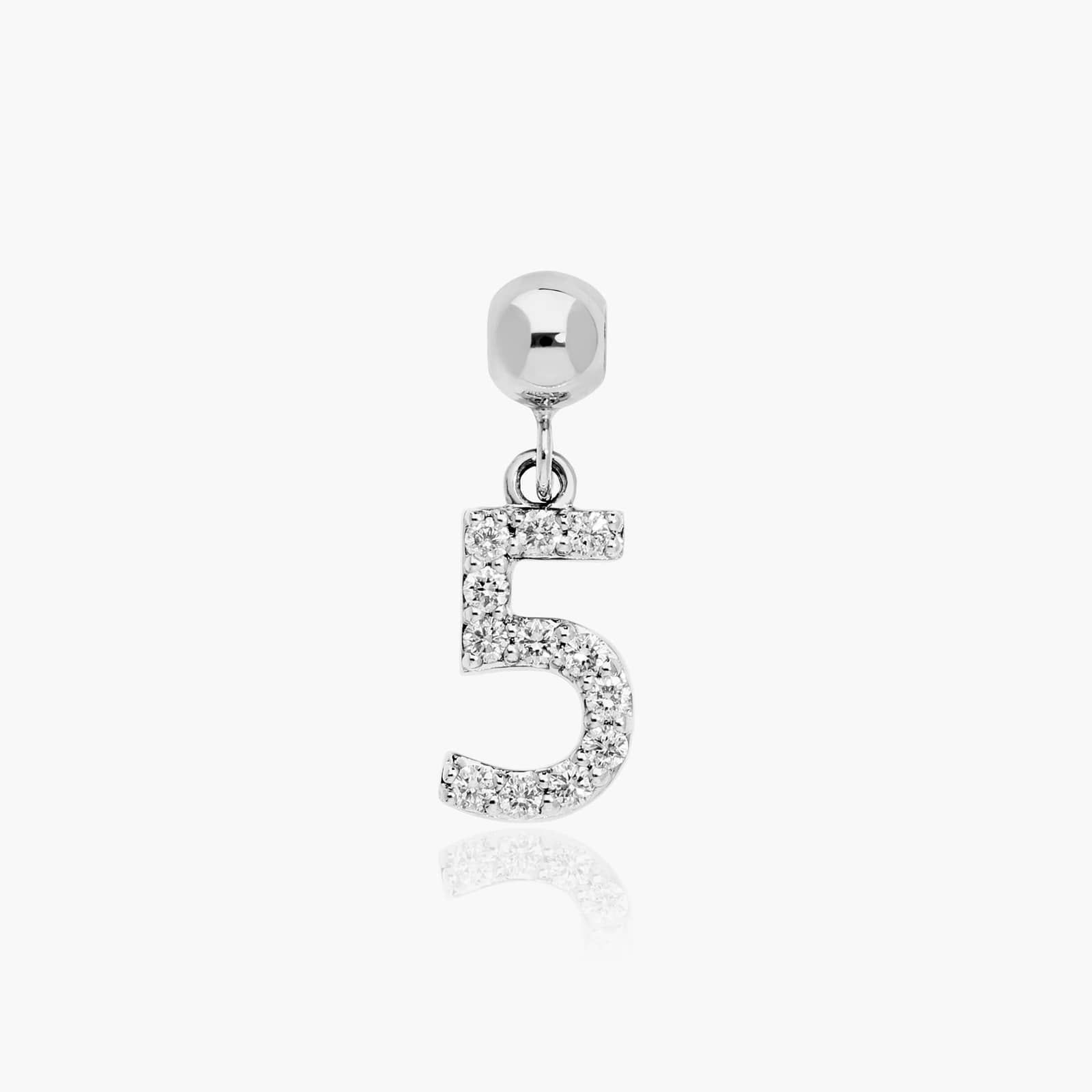 Carry your lucky number everywhere you go! This 14K White Gold Number 5 Lab Grown Diamond Charm is perfect for commemorating all the special dates in your life. Luxurious and chic, never forget another birthday, anniversary, or graduation again, thanks to this one-of-a-kind charm. Chain sold separately. Charms fit only on James Allen's Silicone Bead Slider Charm Chain