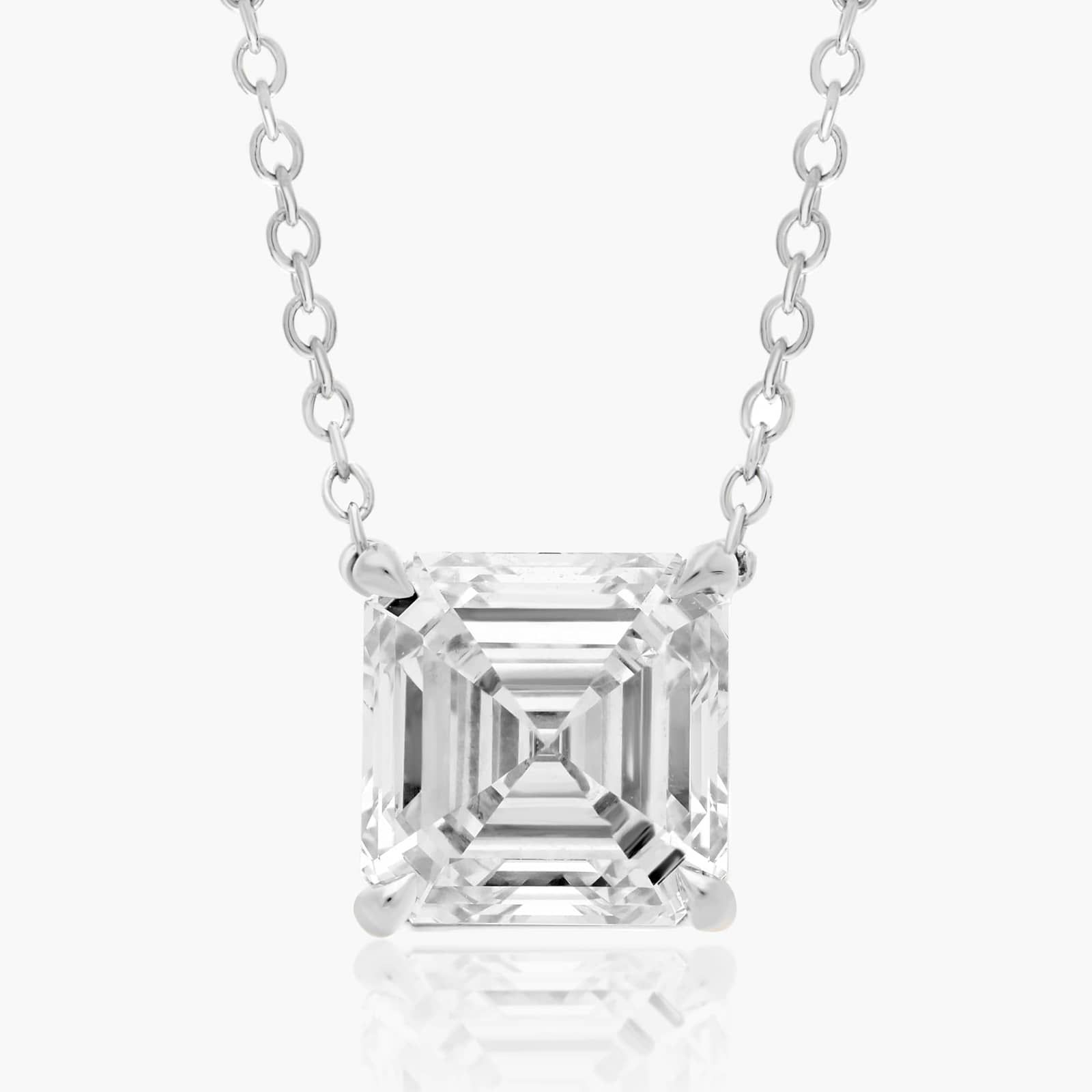 14K White Gold Asscher Cut Lab-Grown Diamond Solitaire Pendant (3.00 CTW - F-G / VS2-SI1)