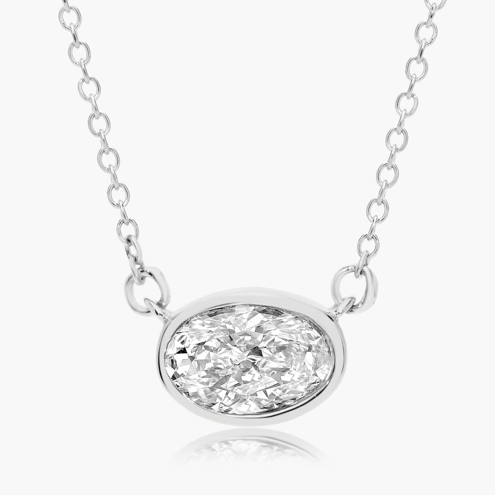 14K White Gold Fancy Bezels Lab Grown East West Oval Diamond Pendant