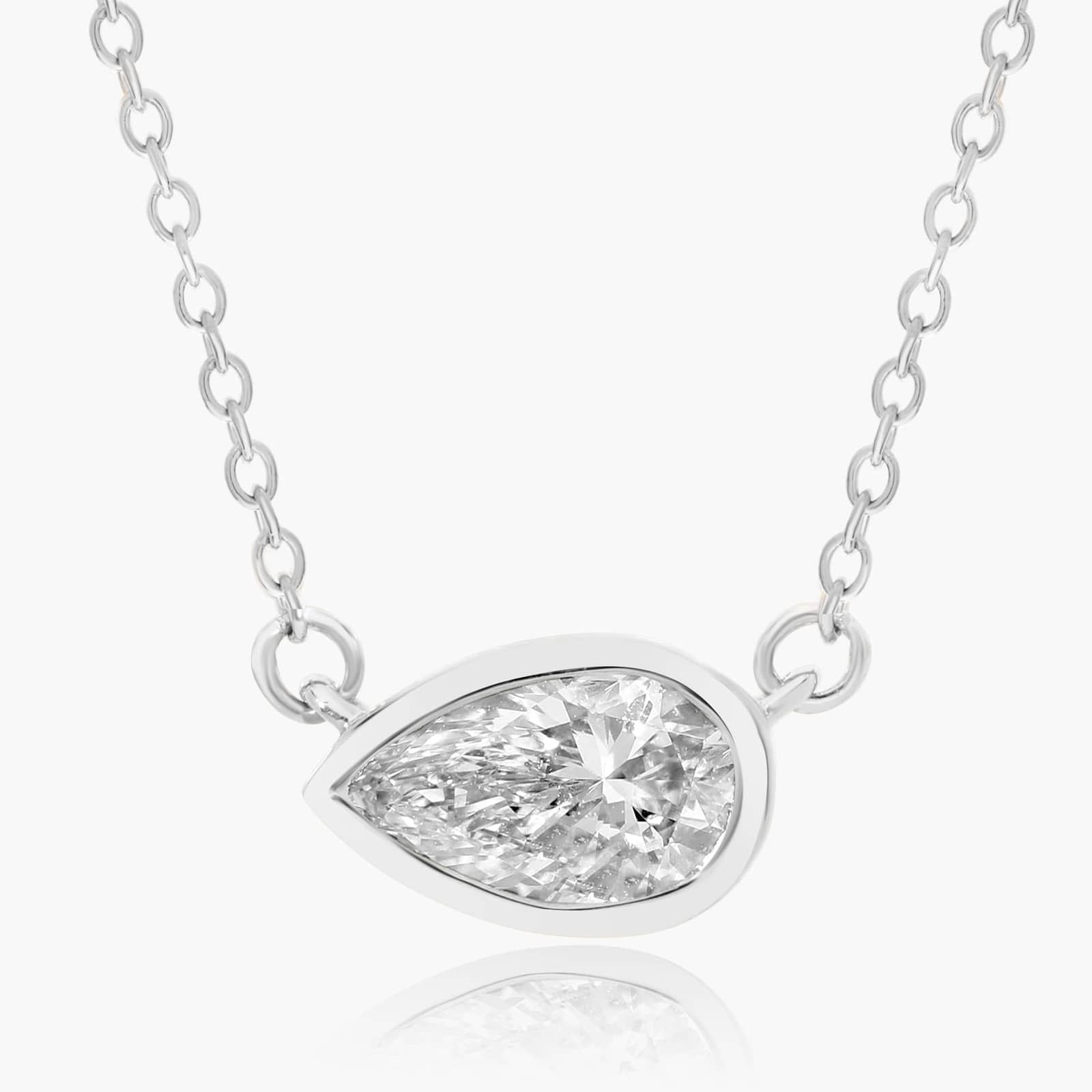 14K White Gold Fancy Bezels Lab Grown East West Pear Diamond Pendant
