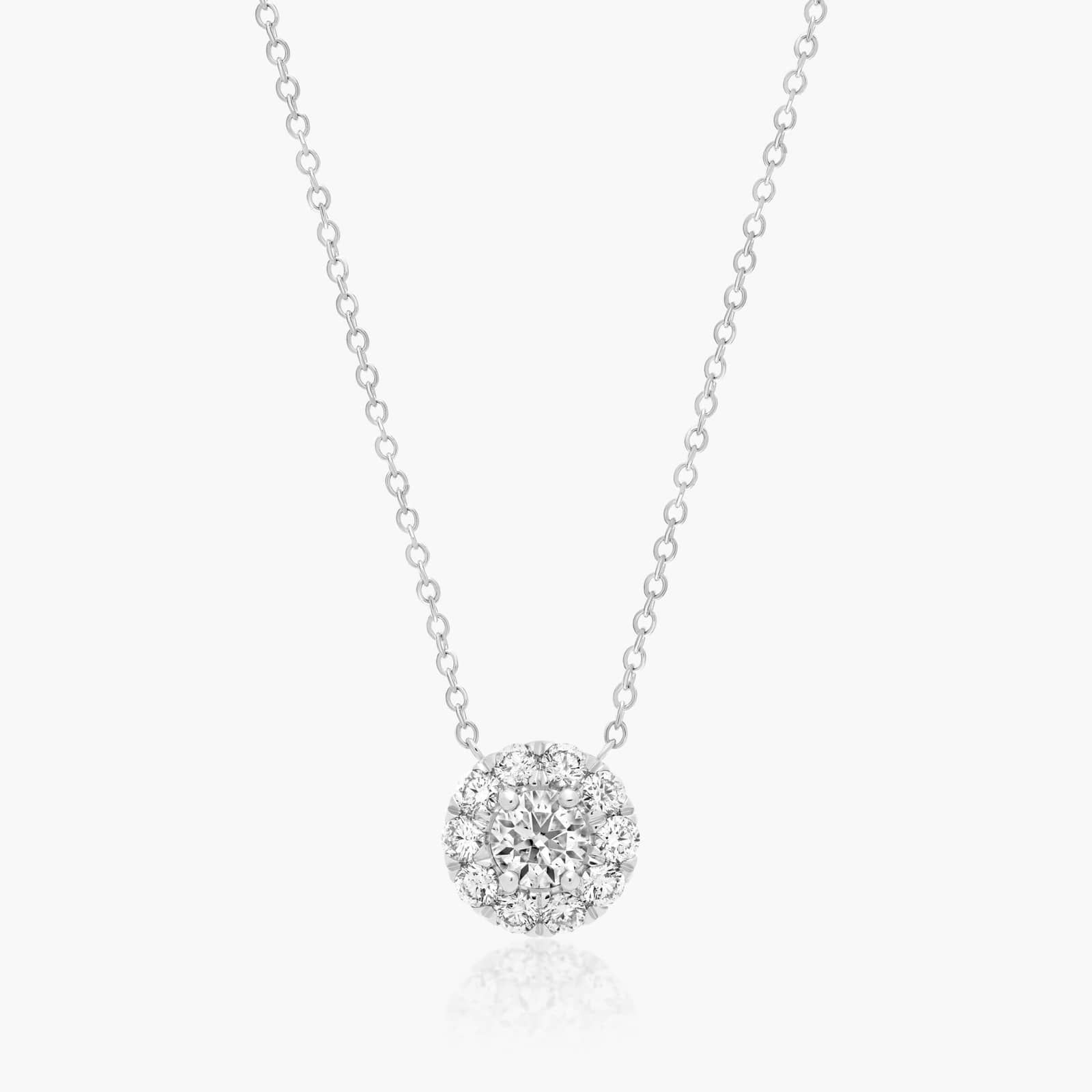 This beautifully crafted pendant showcases a halo of sparkling Lab-Grown round brilliant diamonds that elegantly frame the Lab-Grown center diamond. An adjustable 18" cable link chain securely suspends the pendant.