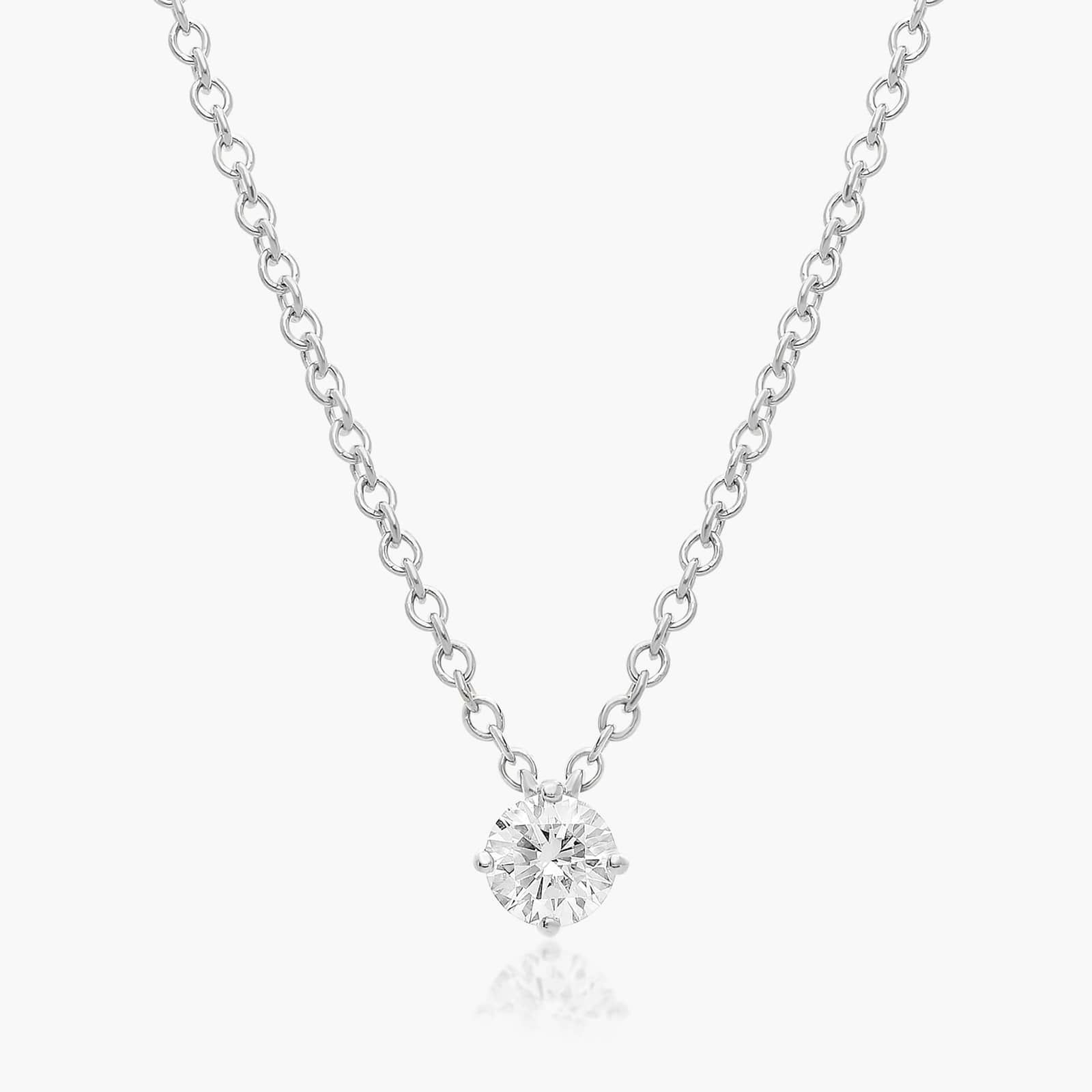 This pendant is designed to showcase the beauty of a round brilliant cut Lab-Grown diamond to its maximum. The finely crafted four prong wire basket pendant features a kite orientation to add a twist to the traditional solitaire necklace.
